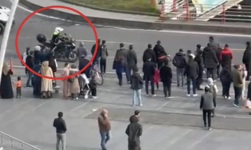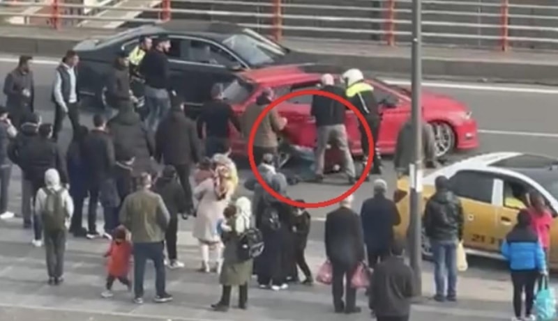 Başka bir trafik polisi daha gelerek olaya müdahale etmeye çalıştı. Kargaşa sırasında sürücü sürücü, otomobile binerek hareket ettirdi.