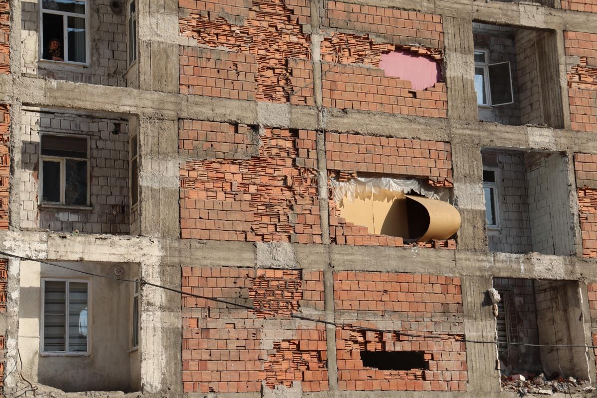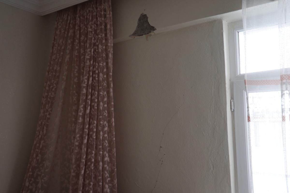 Kaymakamlık, Çevre ve Şehircilik Müdürlüğü’ne gittik. ‘Bizlik bir şey yok, mahkemeye verin’ dediler. Mahkemeye verdik ama sonuçlanması 3 yıl sürecekmiş. Bu süreçte burada durmak istemiyoruz, mağduruz. Bina, araba geçerken bile sallanıyor. Uçak geçse bile sallanıyor. Yan bina ağır hasarlıyken yıkım sırasında bizim binaya zarar verildi. Kiraya çıkmıştık, 6 ay boyunca büyük zorluk yaşadık, sonra tekrar geri döndük. Dış cephe felaket durumda. Gelip geçenler durup bakıyor.