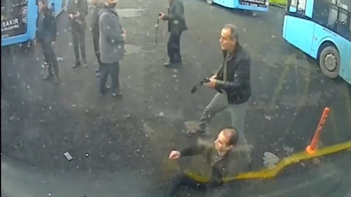 Olay anı otobüsün dış kamerasına yansırken, Kaya suç aleti bıçak ile birlikte gözaltına alındı.