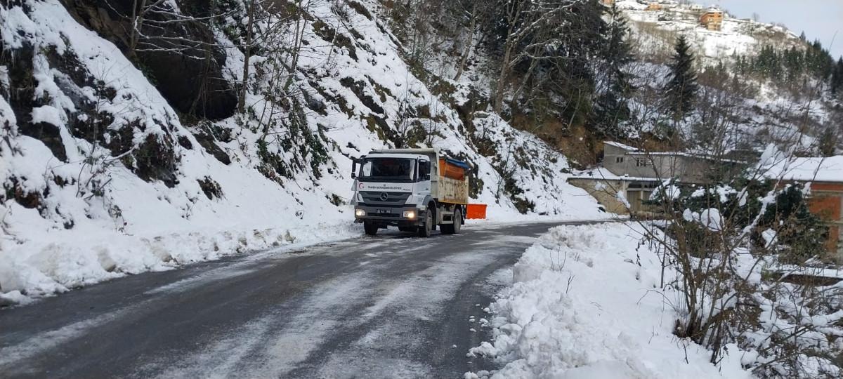 Ekiplerin karla kapanan yollara müdahalesi sürerken, hava sıcaklığının hissedilir derecede azalmasıyla buzlanmalara karşı tuzlama çalışmalarına da ağırlık veriliyor.