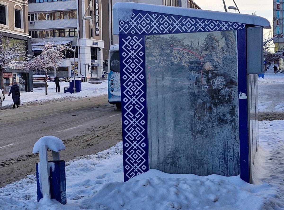 OTOBÜS DURAKLARININ CAMLARI BUZ TUTTU