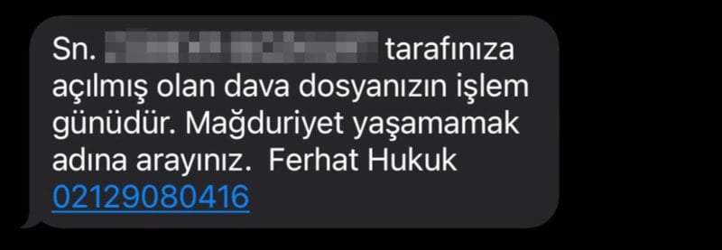Türlü türlü dolandırıcılık yöntemlerine bir yenisi daha eklendi, dolandırıcılar kısa mesaj yoluyla tarafınıza ulaşarak adınıza dava açıldığını söyleyerek hukuki bir dille sizden para talep edebilir.