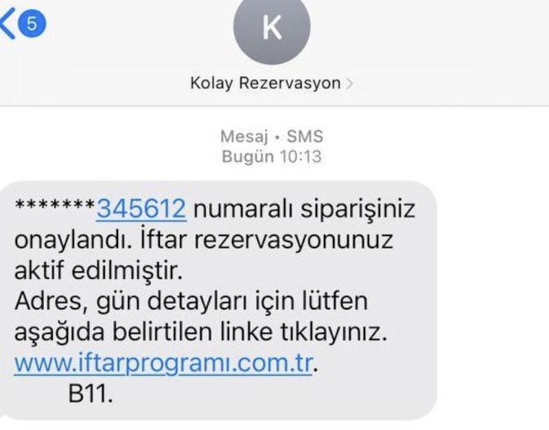 Ramazan ayında "İftar rezervasyonunuz aktif edilmiştir" şeklinde gönderdikleri mesajlar içerisindeki linklere tıklayan vatandaşları kandırmak isteyen dolandırıcılar, kişilere ulaşıyor.