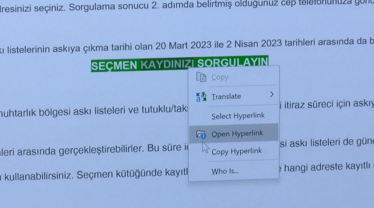 Bu linkte üzerinden seçim kaydı sorgulaması yapılması isteniyor.