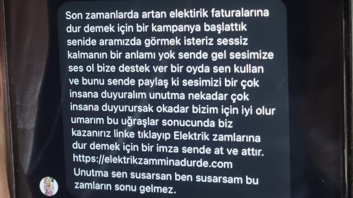 Elektrik faturalarındaki artışın engellenmesine destek kampanyası bahanesiyle çalınmış gerçek hesaplar üzerinden kullanıcılara mesaj atan dolandırıcılar, paylaştıkları linke tıklanmasını istiyor.