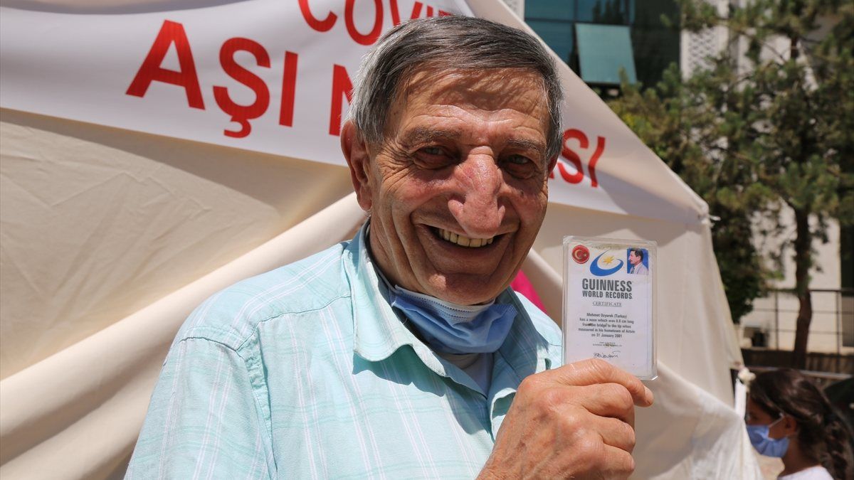 Rize'de 1998 ve 2000 yıllarında düzenlenen Uluslararası Uzun Burun Yarışması'nda 8,8 santimetrelik burnuyla birinci olup Guinness Rekorlar Kitabı'na giren Mehmet Özyürek, aşı yaptırmayanlara seslendi.