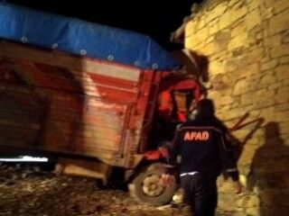 Alınan bilgiye göre, sürücünün direksiyon hakimiyetini kaybettiği 69 AE 609 plakalı kamyon, bir evin duvarına çarparak durabildi. Kazada kamyonun ön kısmında bulunan sürücü ve yanındaki arkadaşı yaralandı.