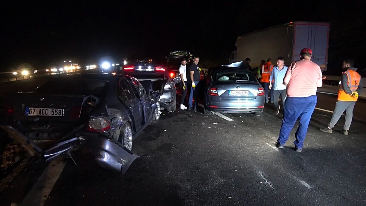 Düzce'de Anadolu Otoyolu'nun Yeşilyayla mevkisinde İstanbul istikametine giden 1 minibüs, 1 kamyonet ve 1 hafif ticari araç ile 8 otomobil çarpıştı.