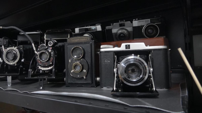 41 yıl boyunca aynı işi yapmayı sürdüren Akgün, biriktirdiği ait fotoğraf makinelerini sergiliyor.
