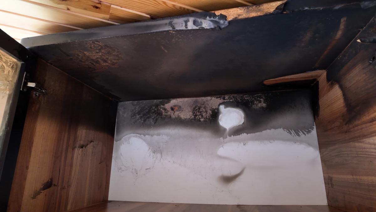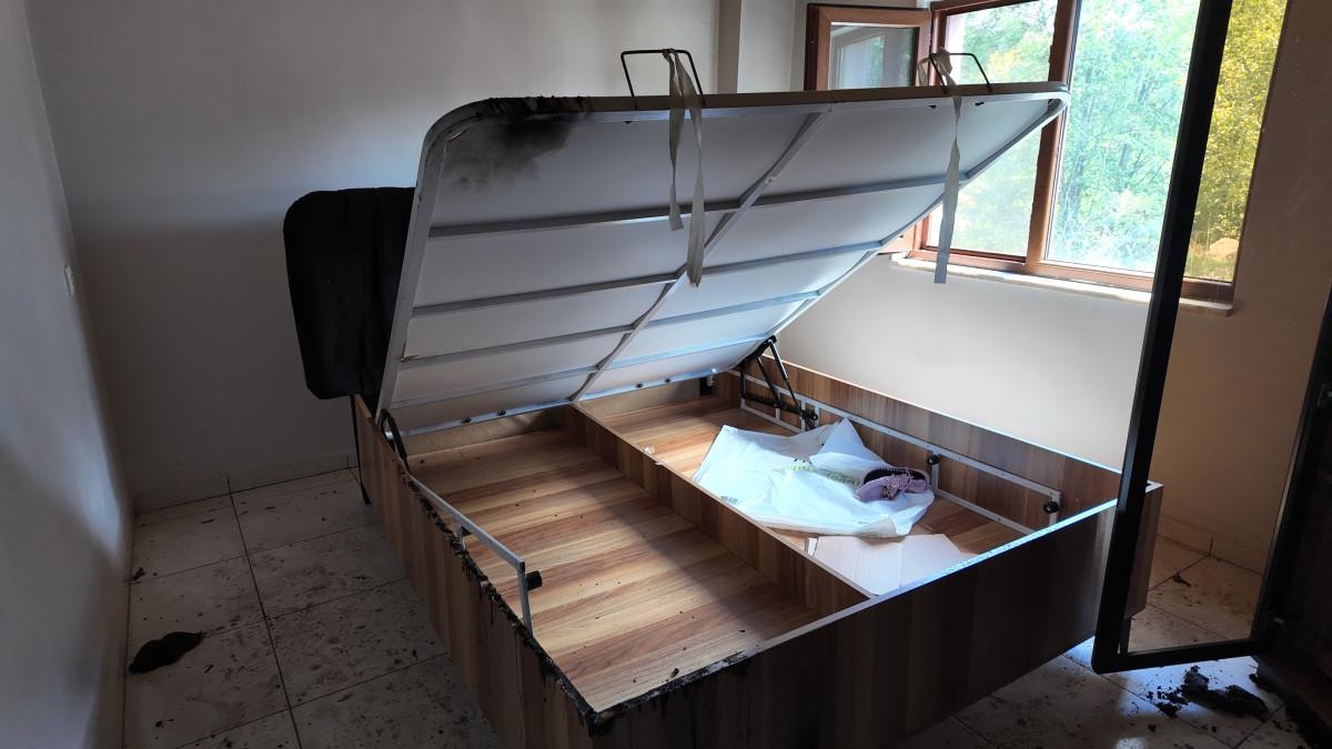 Geçen salı akşamı 03.30-04.00 arası kendi bazamın yandığını gördüm ve söndürdüm. Ondan 2-3 gün sonra tekrar işten geldim, saat 21.00-22.00 arası. Odanın yandığını gördüm. Çocukların bağırmasına çıktım. Bunu söndürdük, tekrar dışarı çıktık, sabahladık. Sabah odadaki diğer baza yandı. Bunların bulunduğu yerde hiç yanacak bir şey de yok, elektrik de yok. Yanacak hiçbir şey yok.