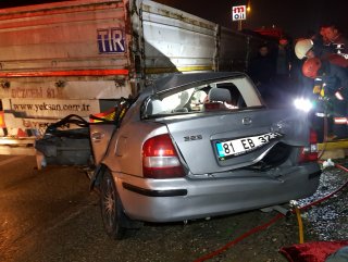 D-655 karayolunda Akçakoca istikametinden Düzce istikametine seyreden Hüseyin İ. idaresindeki tıra, aynı istikamette seyreden Adnan Akyol’un kullandığı otomobil Osmanca Sapağı mevkiinde çarptı.