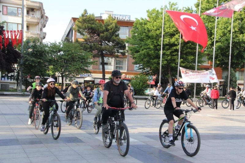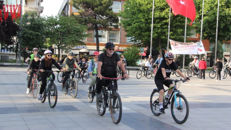 Düzce'de bisikletli bir grup, trafikte varlıklarını göstermek amacıyla önce sessiz bir sürüş gerçekleştirdi. Ardından, 3 yıl önce ara sokakta bisikletiyle ilerlerken bir otomobilin çarpması sonucu hayatını kaybeden vatandaşı, kaza yerinde yatarak andı.