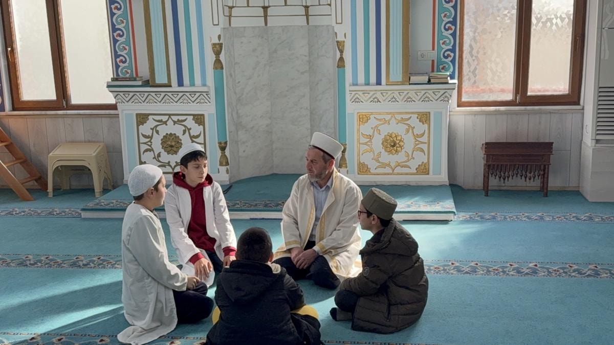 İmamın yönlendirmesi ile cami içerisinde kendisine yer verilen yabancı turist için yerden ısıtmalar da çalıştırıldı.