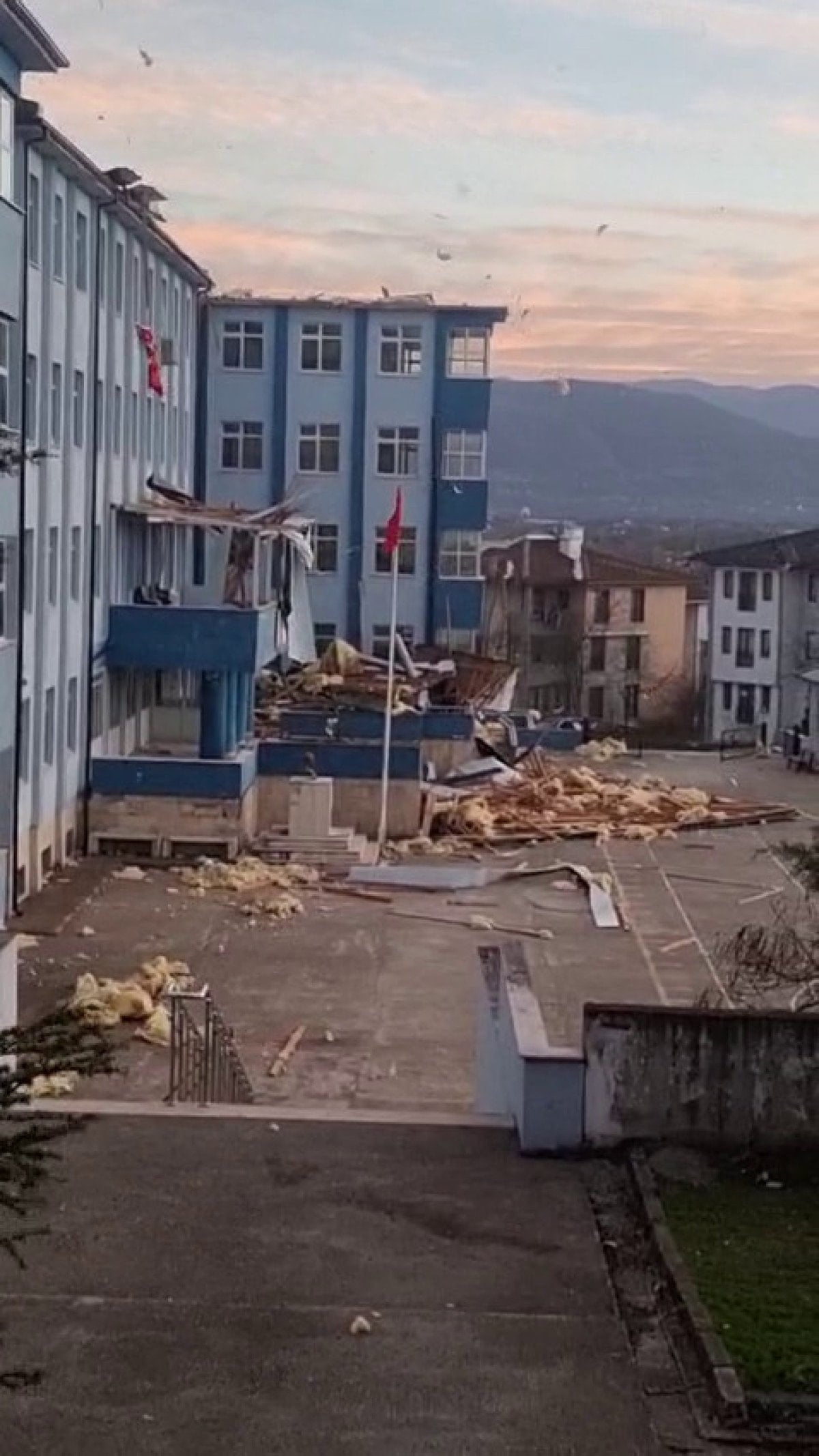 - Düzce'de kuvvetli rüzgar, Atatürk Anadolu Lisesi'nin çatısını uçurdu.