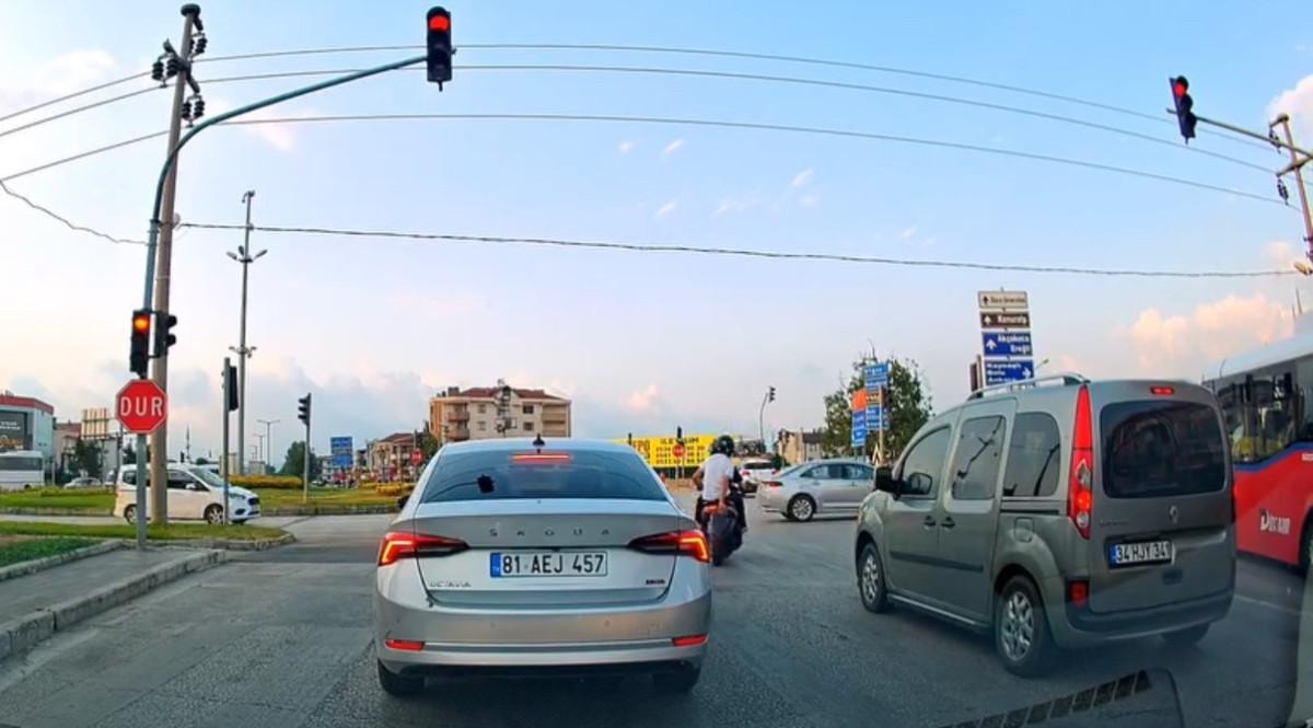 Düzce'nin Çoban kavşağında akşam saatlerinde, ilginç anlar kaydedili