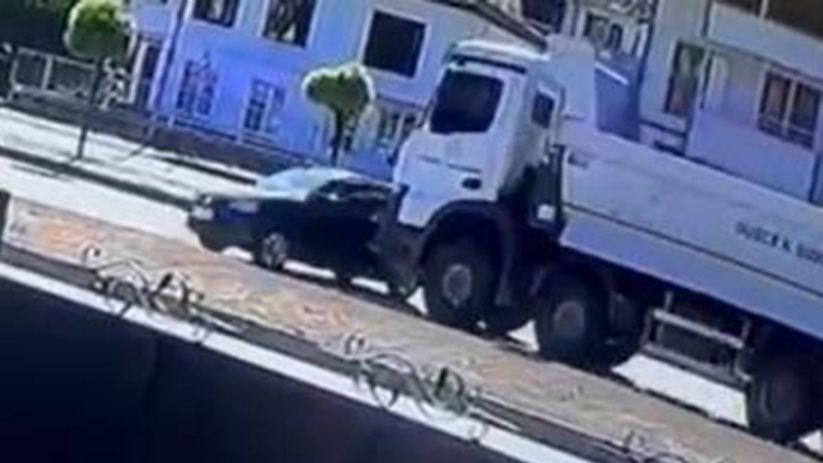 Görüntülerde kamyonun çarpması sonucu otomobilin savrulması yer alıyor.