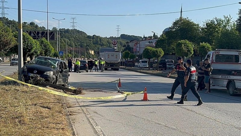 Düzce'de Zonguldak kara yolu Boğaziçi sapağı mevkiinde E.Y. idaresindeki İl Özel İdaresi'ne ait hafriyat kamyonu önünde seyreden H.Ç. yönetimindeki otomobile çarptı.