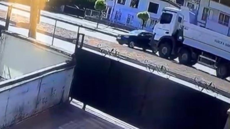 Kaza anı bir iş yerinin güvenlik kamerasınca kaydedildi.