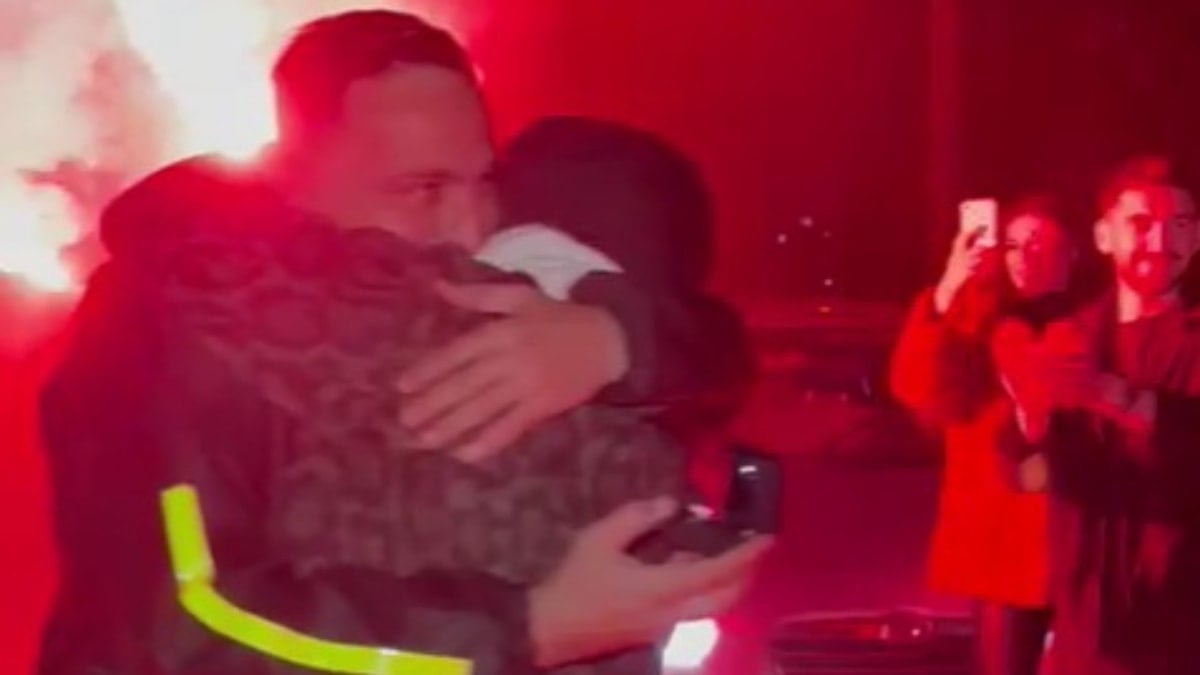 Arkadaşlarının ellerinde meşaleler yakmasının ardından yattığı yerden kalkan Onur Eski, diz çökerek elinde yüzükle kız arkadaşı Elif Ceylan’a evlilik teklif etti.