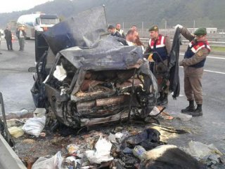 Öğleden sonra TEM yolunun Düzce Asar Köprü mevkiinde meydana gelen kazada, İstanbul yönüne giden Hıdır Çelik yönetimindeki 54 KT 817 plakalı TIR önündeki 61 FC 378 plakalı otomobile arkadan çarptı.