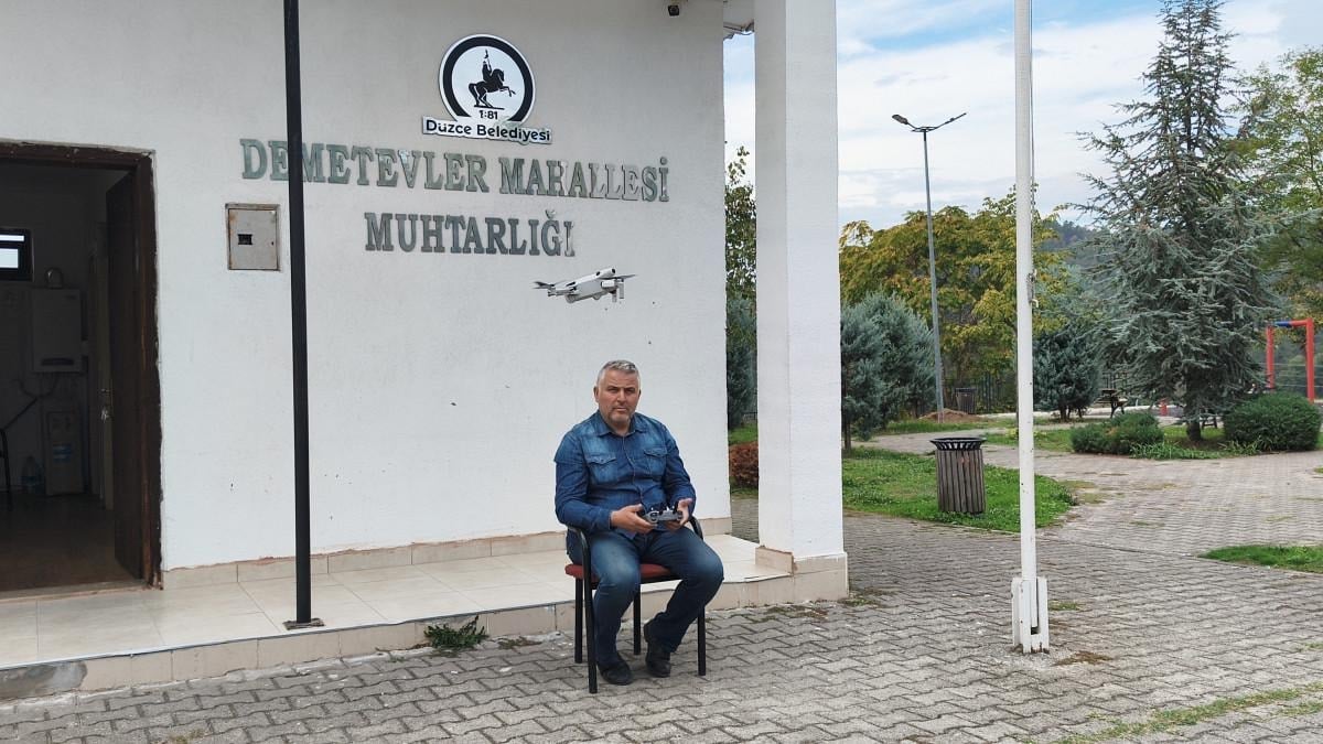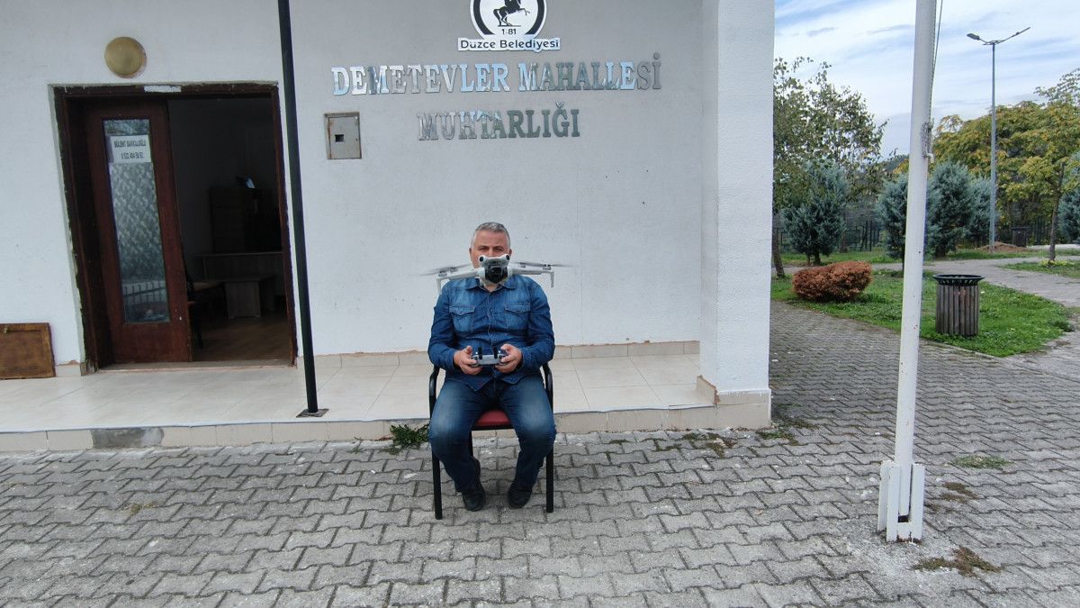 - Düzce'nin Demetevler Mahallesi Muhtarı Bülent Bakkaoğlu, mahallesini her sabah drone ile kontrol ediyor.