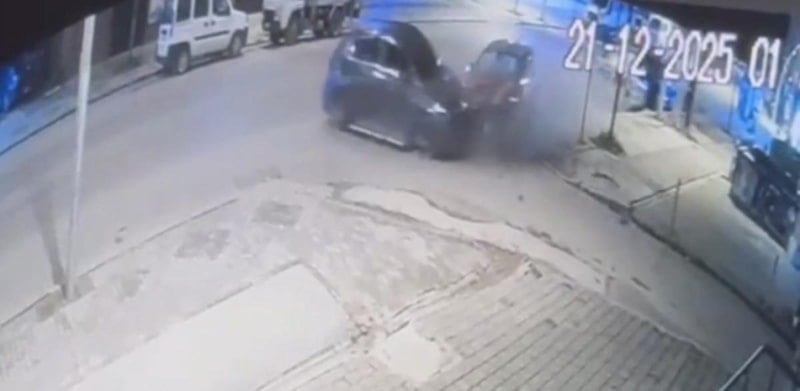 Kaza nedeniyle her iki araçta maddi hasar oluşurken, kaza anı çevredeki bir iş yerinin güvenlik kamerasına yansıdı.