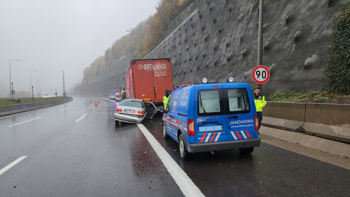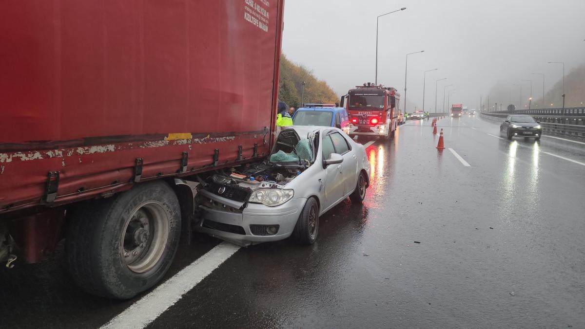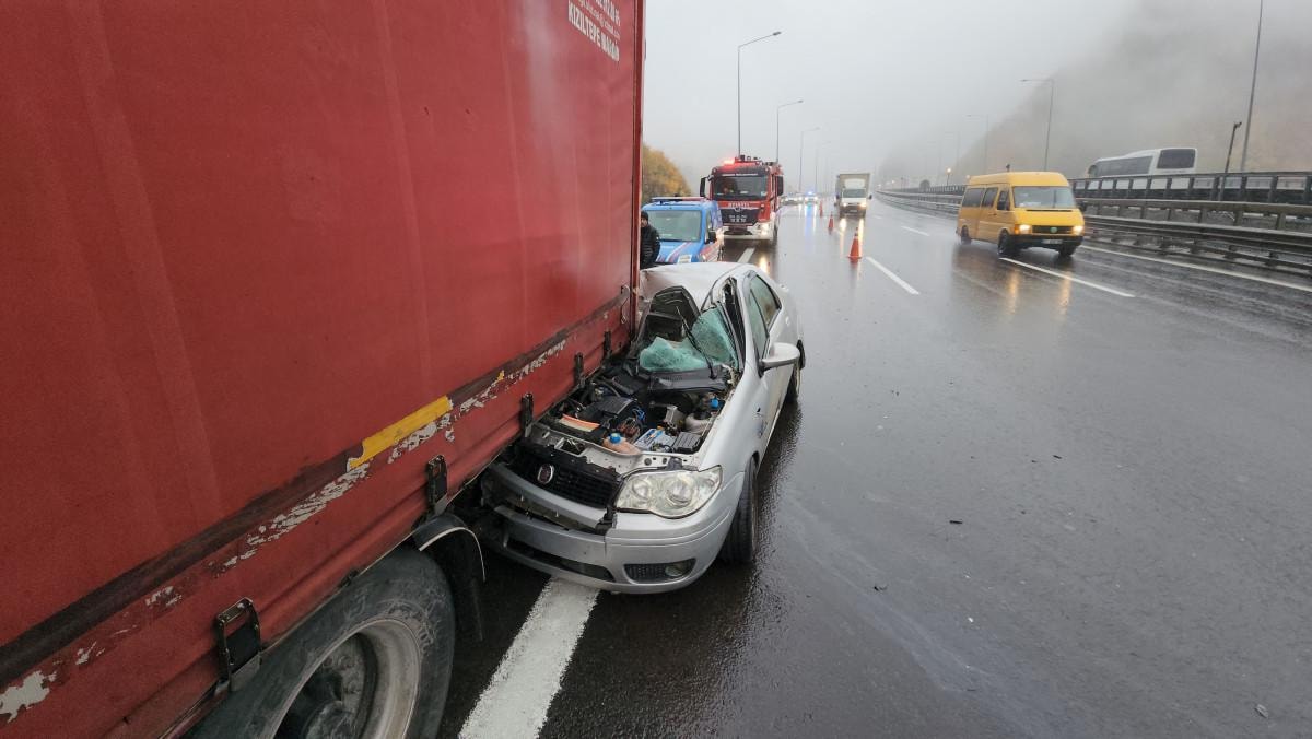 İstanbul istikametine giden Mücahit Kaya (28) idaresindeki 34 KKN 583 plakalı otomobil, Davut Aydın yönetimindeki 76 AAN 162 plakalı tıra arkadan çarptı.