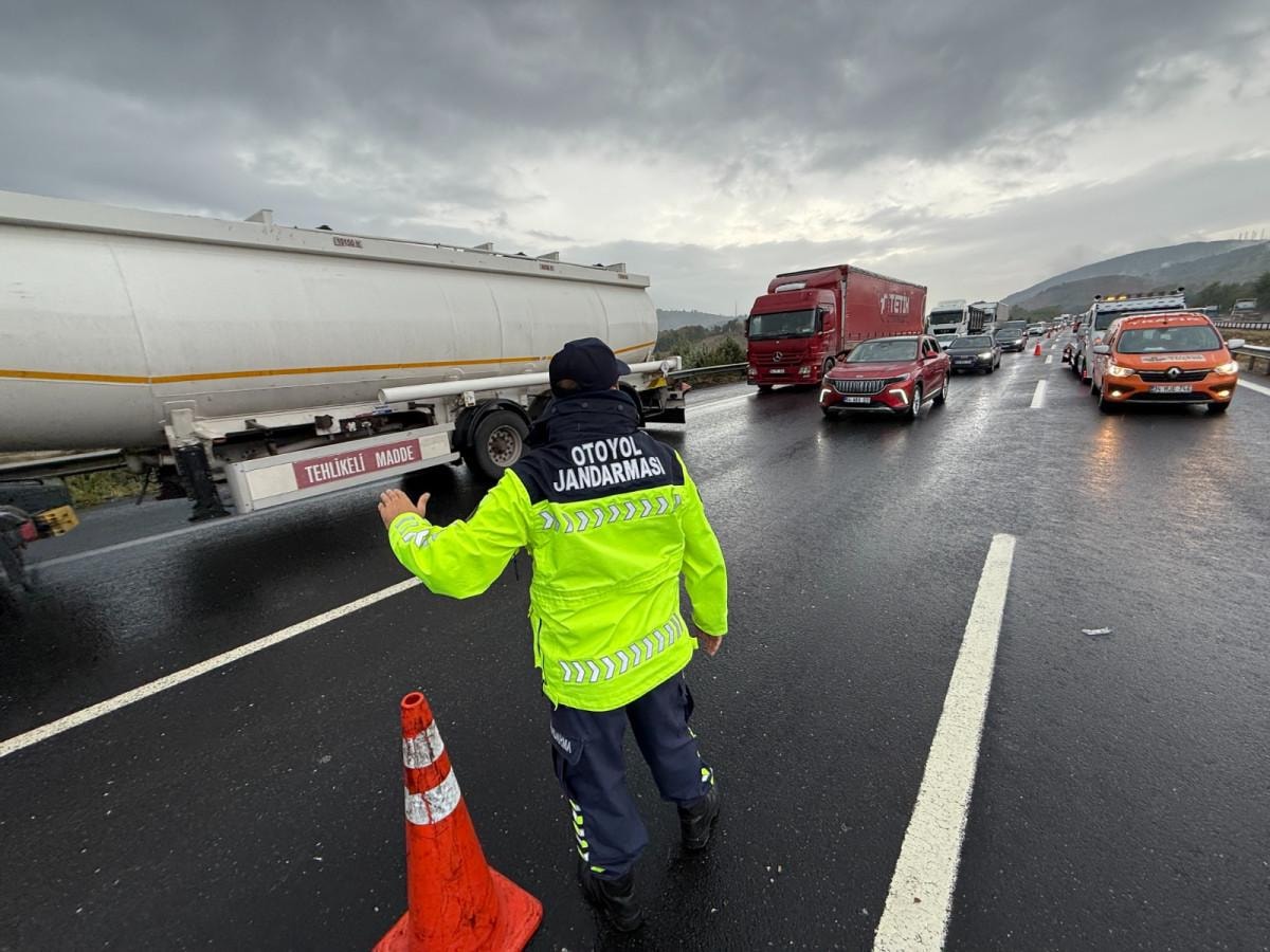 Kaza nedeniyle otoyolun Ankara istikameti bir süre trafiğe kapanan yolda uzun araç kuyrukları oluştu.