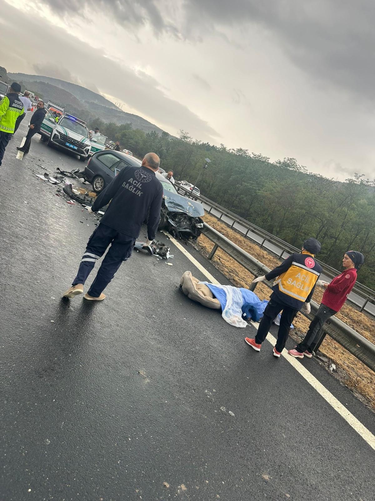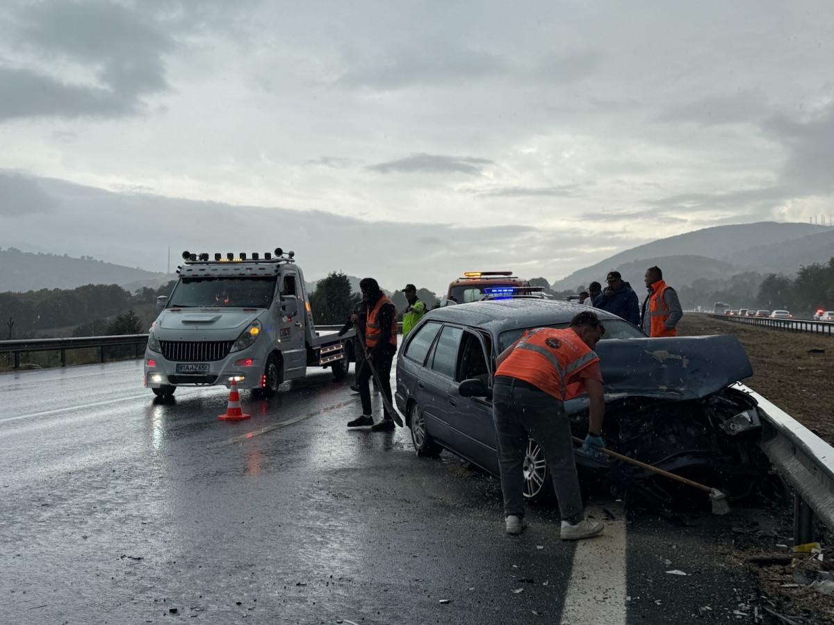 Düzce'de Anadolu Otoyolu'nun Gümüşova ilçesi Yongalık köyü mevkiinde H.İ.T. yönetimindeki otomobil, aynı yöne seyreden Z.Ö. idaresindeki otomobile arkadan çarptı.