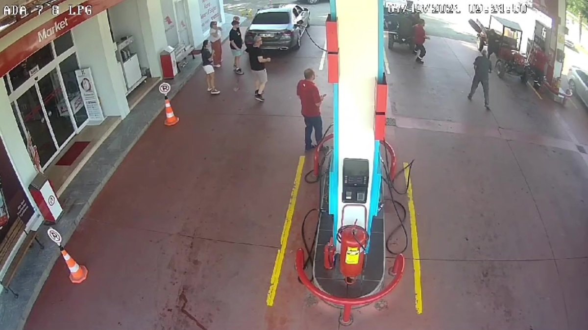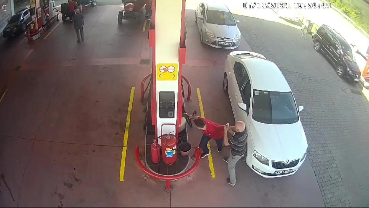 Lastik önce istasyondaki akaryakıt pompasına daha sonrasında ise pompanın yanında duran ve 'patpat' diye tabir edilen tarım aracına çarparak durdu.