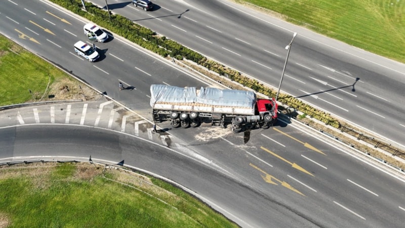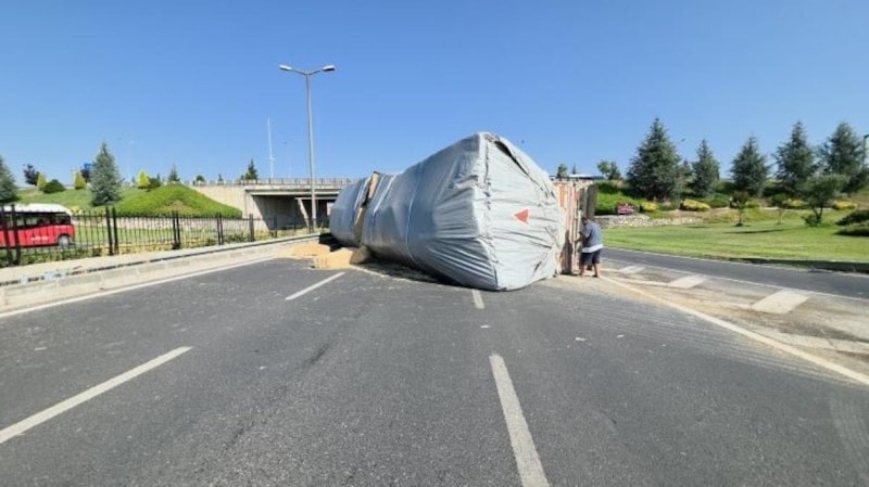 D-100 kara yolu Kervan kavşağı İstanbul istikametinde yaşanan kazada Kadir K. idaresindeki DAF marka tır, sürücüsünün direksiyon hakimiyetini kaybetmesi sonucunda kontrolden çıkarak devrildi.
