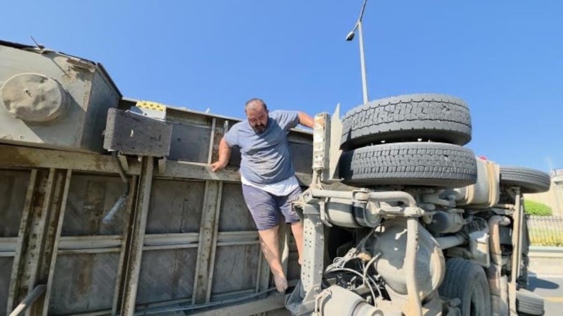 D-100 kara yolu Kervan Kavşağı mevkisinde saman yüklü tır aracı devrilirken kazayı yaralanmadan atlatan sürücü önce mazot hortumlarını kontrol etti, ardından ise 'hızlıydım' dedi.