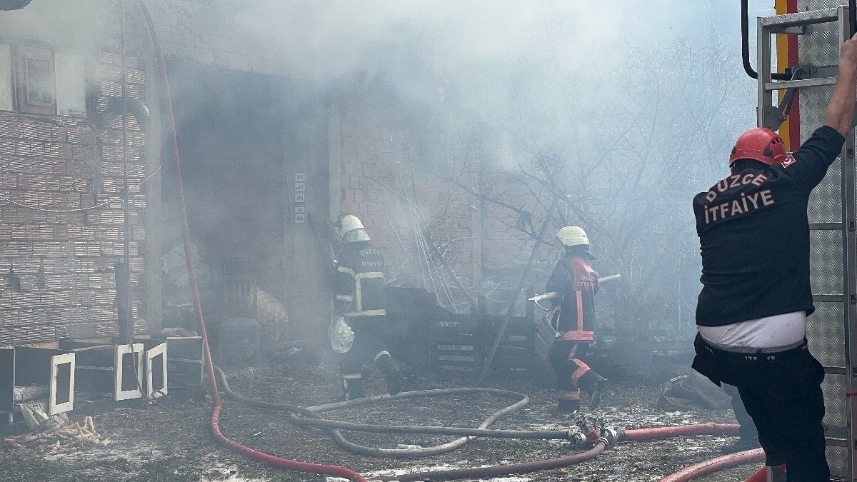 Düzce'nin Aydınpınar köyü, Merkez Mahallesi’nde samanlıkta yangın çıktı.