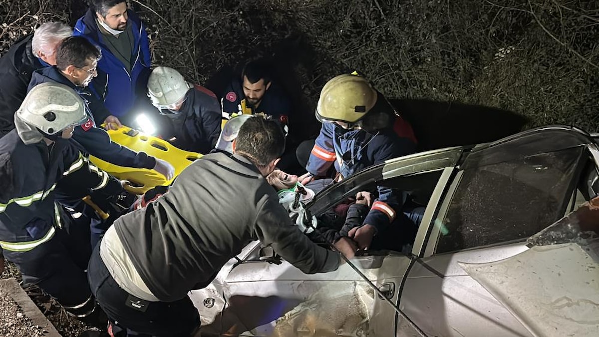4 kişi itfaiye ekiplerinin müdahalesi ile yaklaşık yarım saatlik çalışmanın ardından araçtan çıkarılarak sağlık ekiplerine teslim edildi.