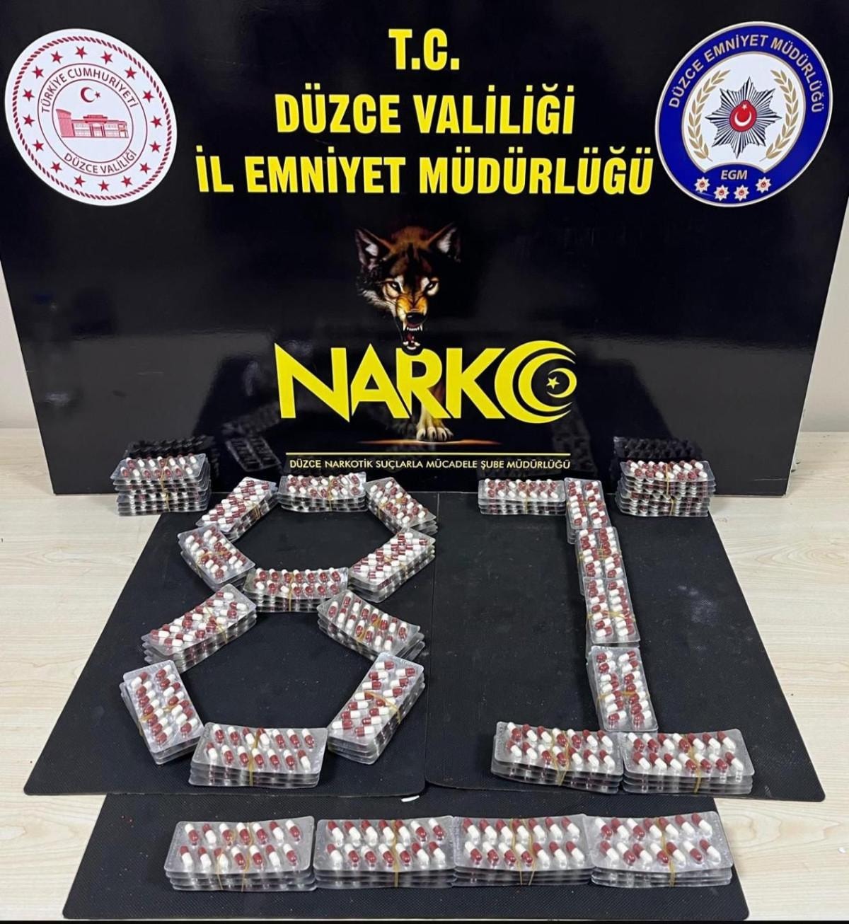 Yapılan aramada bin 735 adet sentetik ecza ele geçirildi.