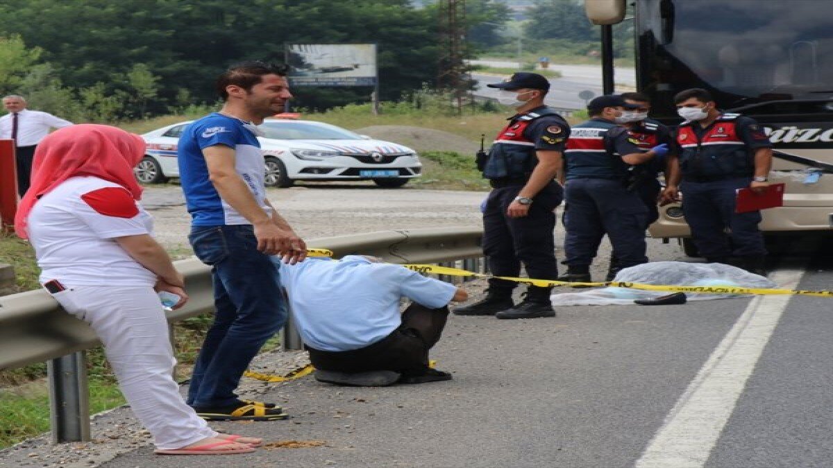Düzce-Zonguldak Ereğli seferini yapan Adnan A.'nın kullandığı 81 AAV 999 plakalı yolcu otobüsü, su aldıktan sonra yolun karşısındaki aracına geçmek isteyen 55 yaşındaki Hanife Yılmaz'a çarptı.