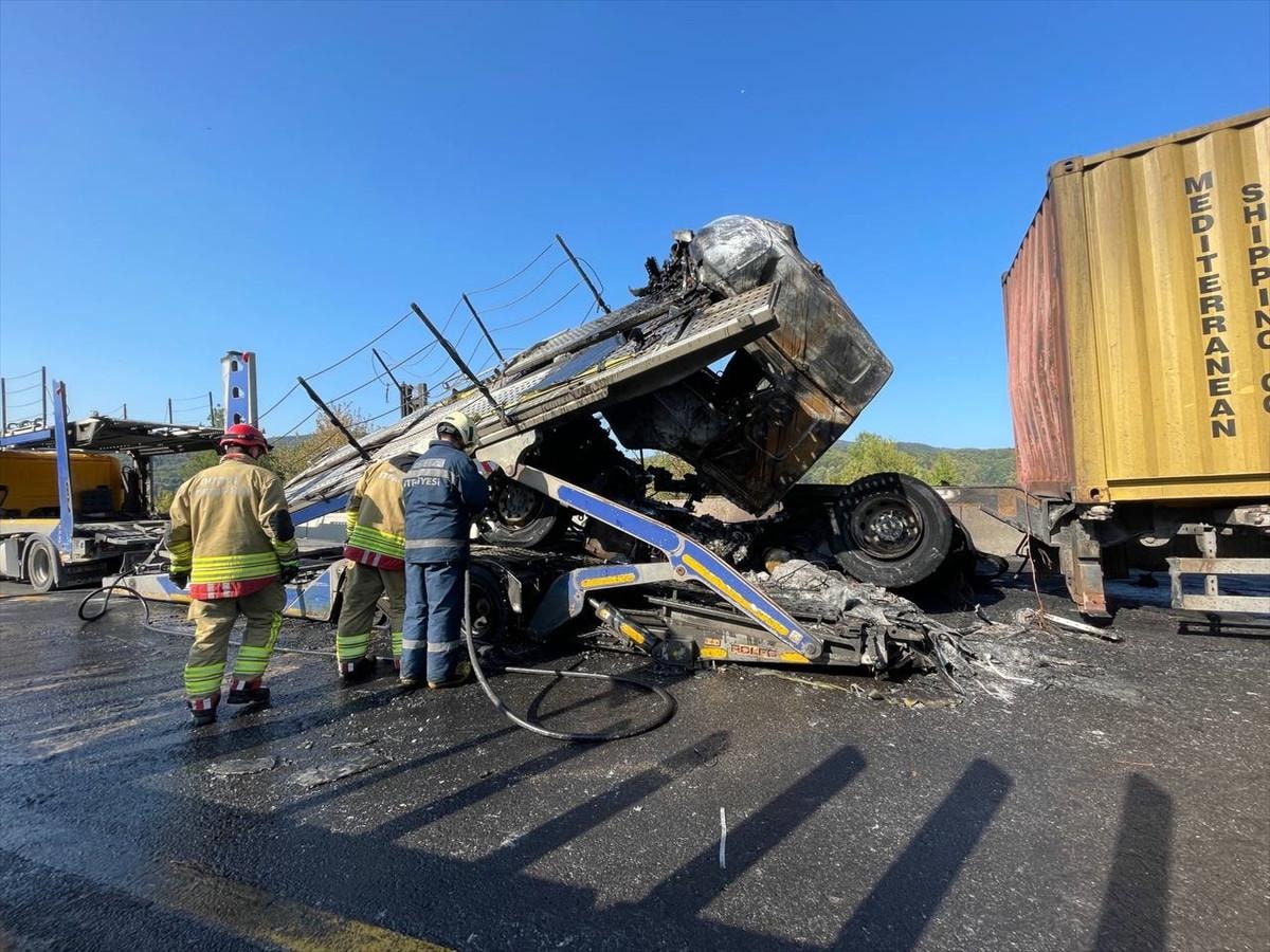 Kaza sebebiyle karayolunun İstanbul yönü ulaşıma kapandı.
