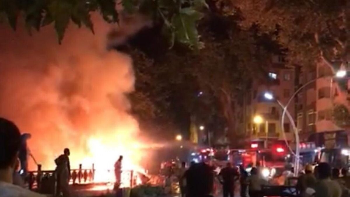 Olay yerine gelen itfaiye ekiplerinin yangına müdahale ettiği sırada, alevler yan tarafta bulunan restorana sıçradı.