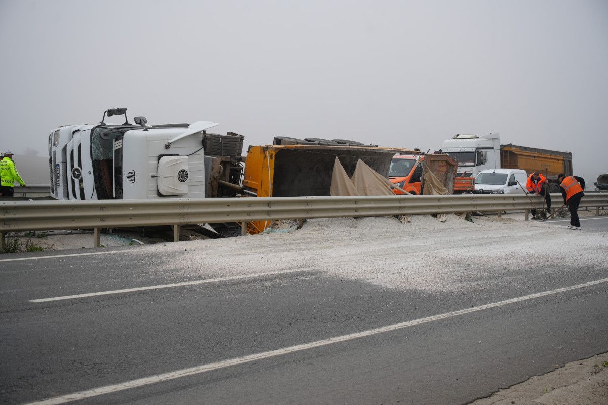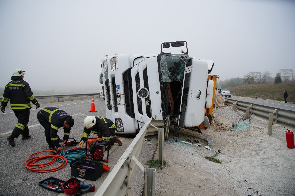 - Edirne-Havsa yolunda kum yüklü tır yan yattı.