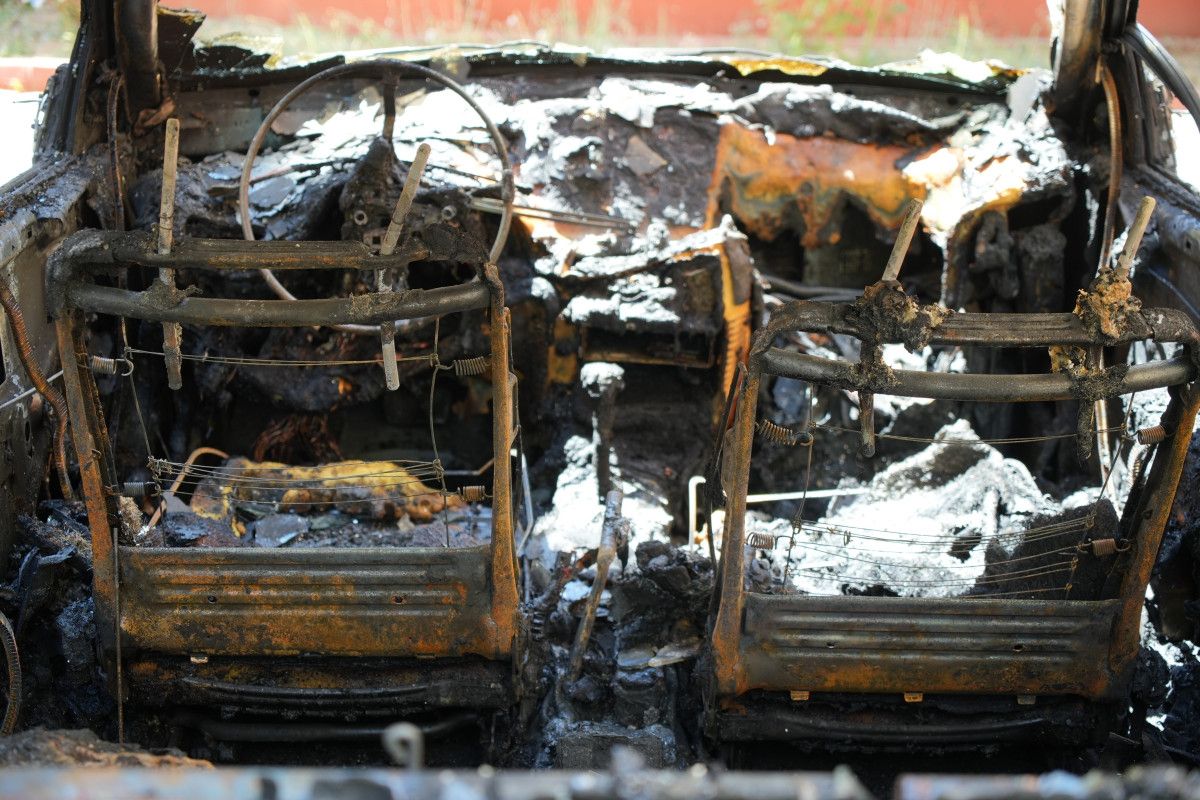 Yangında otomobiller kısa sürede alev topuna döndü.