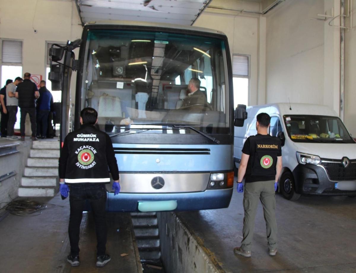 Türkiye'ye giriş yapmak üzere gümrük sahasına gelen otobüs, gümrük muhafaza ekiplerince şüpheli görülerek X-ray taramasına sevk edildi.