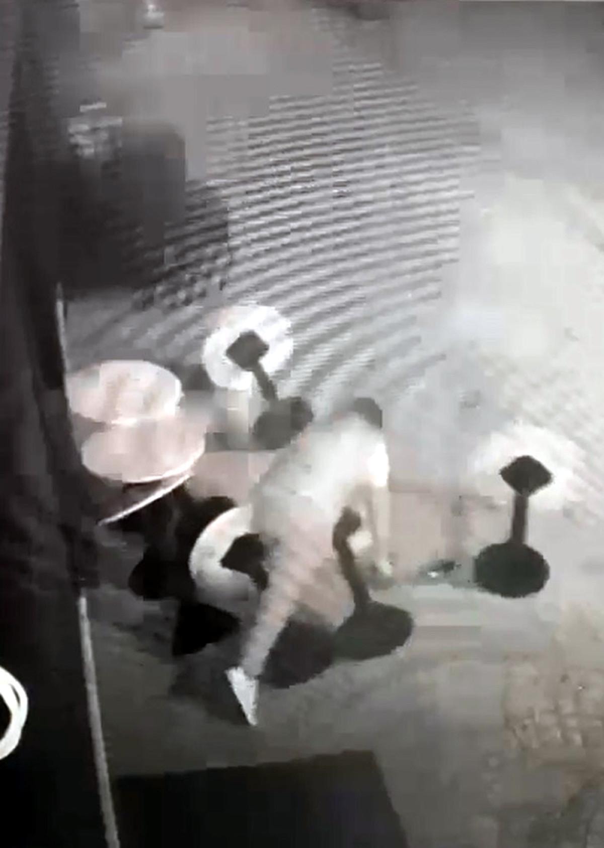 Görüntülerde, alkollü olduğu görülen bir kişinin gece saatlerinde iş yerinin önüne geldiği, kişinin dükkan önüne bırakılan masaya oturduğu yer aldı.