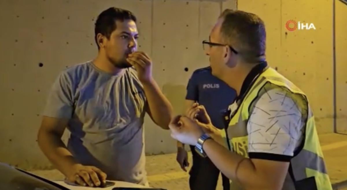 Alkollü sürücü, "İki-üç tane bira içtim, insanlık namına dinle, arabamı bari çekme, 6 kilometrelik yol diye geldim" sözleriyle cezadan kaçmaya çalışsa da polisi ikna edemedi.