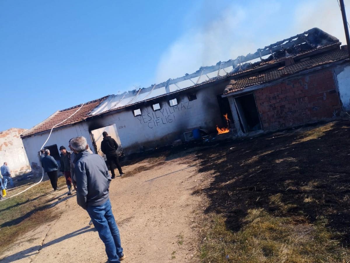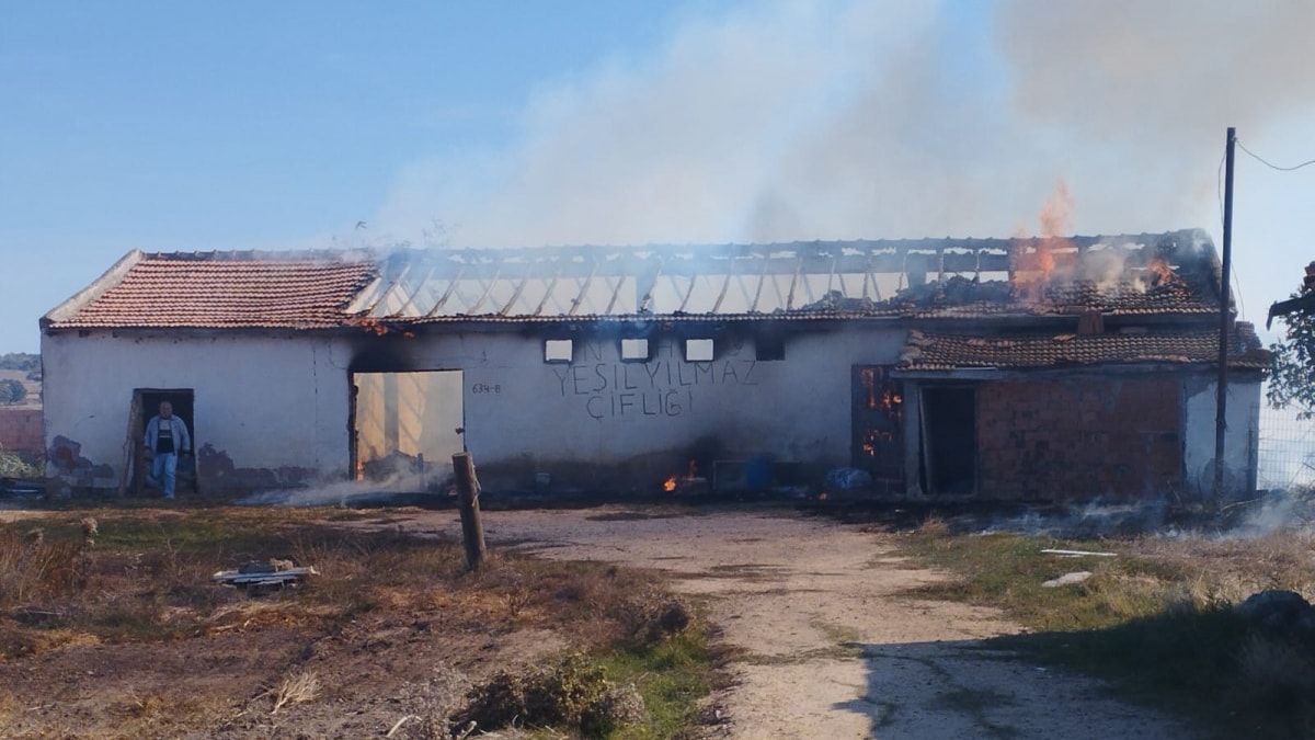 Alevler rüzgarın da etkisiyle yakındaki bir çiftlikteki depoya sıçradı.