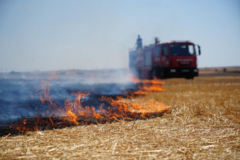 Edirne'de Tayakadın köyü yakınlarında meydana gelen olayda, anız yangını çıktı.