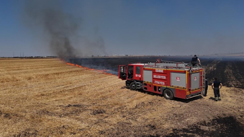 Edirne'de çıkan ve rüzgarın da etkisiyle kısa sürede geniş bir alana yayılan anız yangını, ekiplerin çabasıyla kontrol altına alındı.