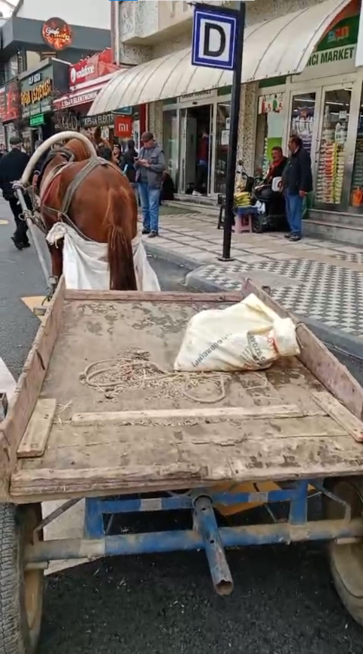 Polis, denetim sırasında meydandaki yaya geçidine at arabası bırakıldığını fark etti.