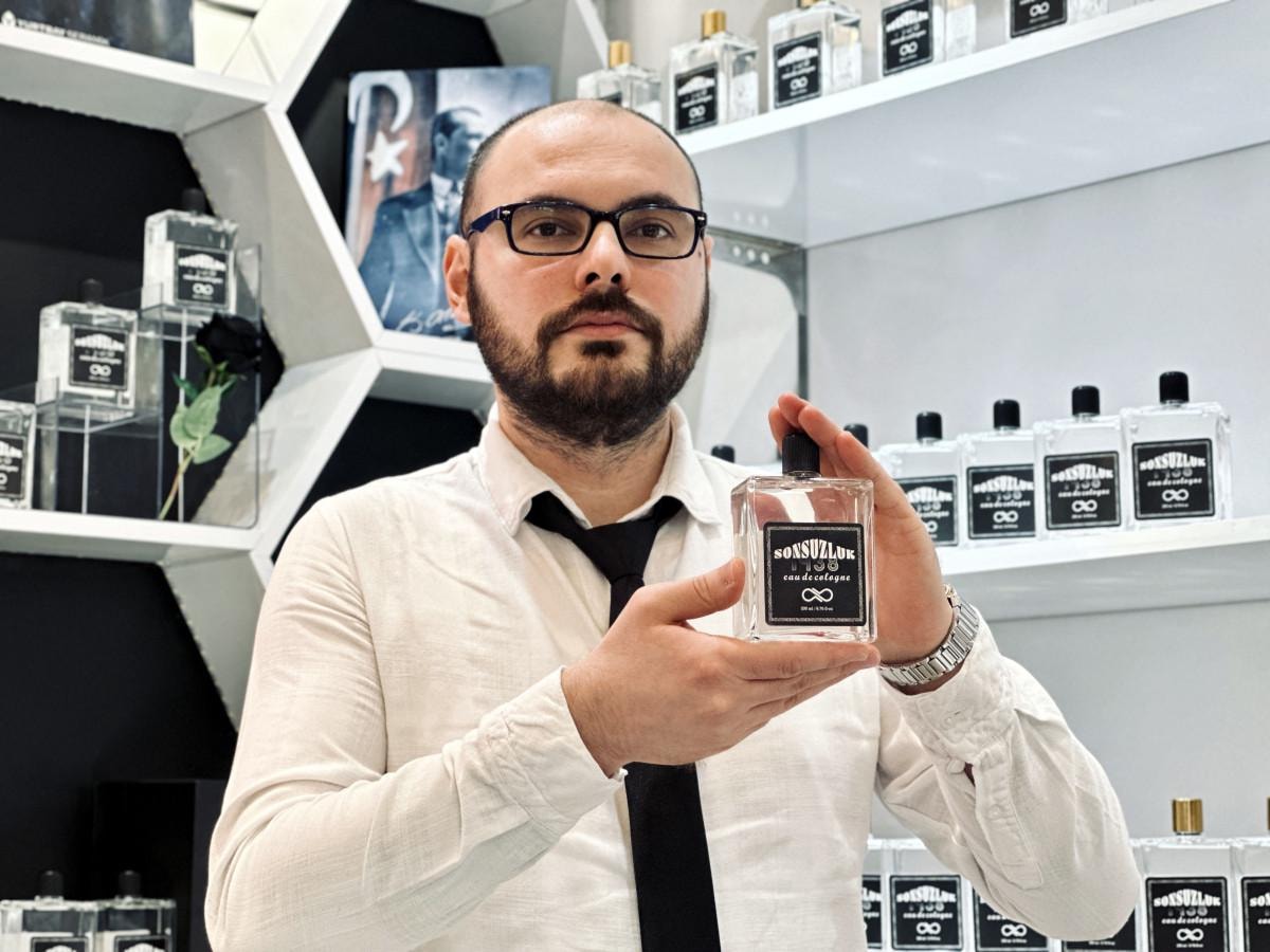 Parfümün içerisine farklı notalardan oluşan 10 koku katan Özmen, 'Sonsuzluk' ismini verdiği kolonyayı üretti.