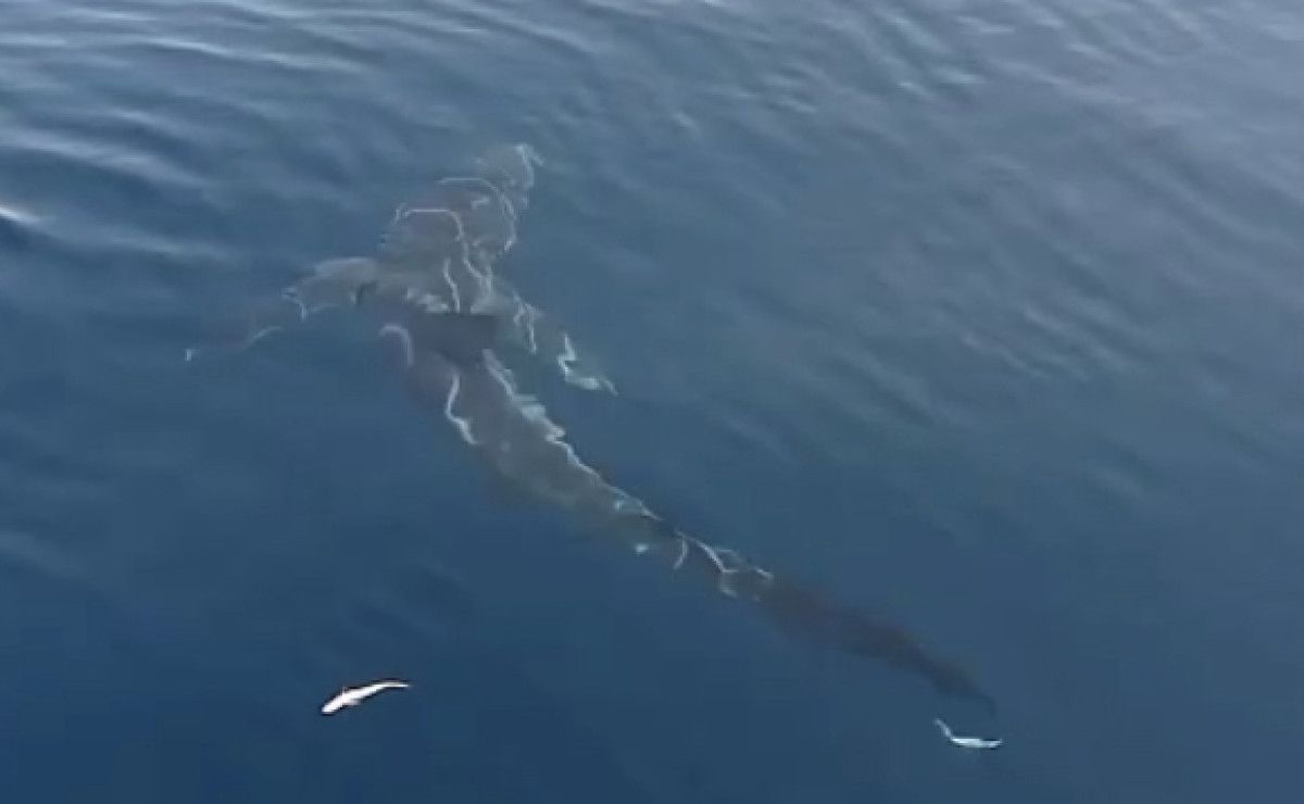Bir süre su yüzeyinde kalan köpek balığı daha sonra gözden kayboldu.