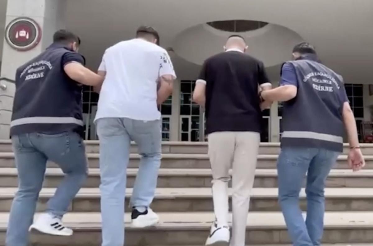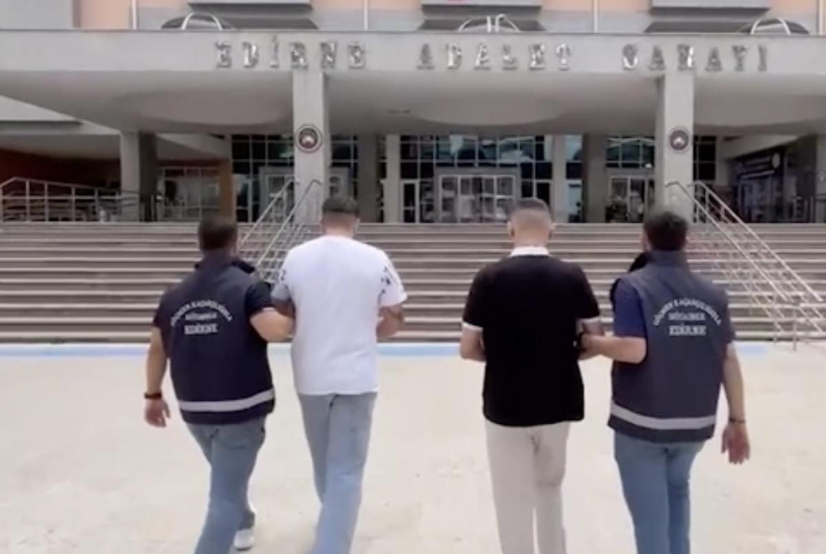 Edirne Emniyet Müdürlüğü'ndeki işlemleri tamamlanan iki şüpheli, adliyeye sevk edildi.